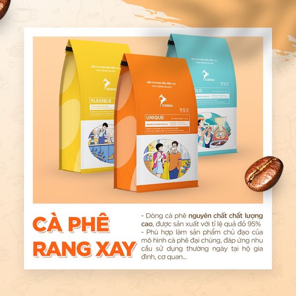 Chỉ riêng dòng cà phê rang, Konnai Coffee cung cấp hai dòng sản phẩm, phù hợp với tùy từng yêu cầu sử dụng các doanh nghiệp, mô hình kinh doanh.