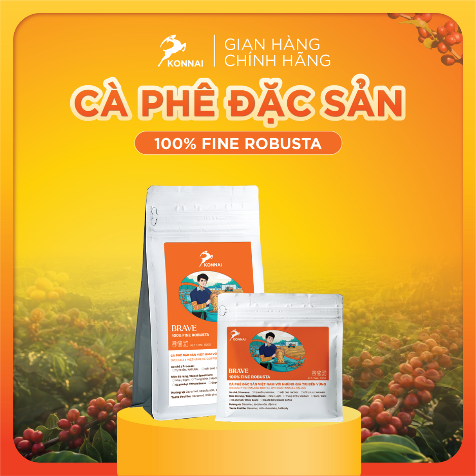 🌱Cà phê rang xay thương hiệu Konnai Coffee là dòng cà phê Việt chất lượng cao (pha phin/pha máy) của Detech Coffee, với hương vị thơm ngon đặc biệt và chất lượng đạt chuẩn sản xuất theo mô hình cà phê từ nông trường. Sử dụng nguồn nguyên liệu tuyển chọn từ quả cà phê Arabica Sơn La, Arabica Điện Biên và Robusta Lâm Đồng, được chế biến theo phương pháp chế biến ướt và mật ong, cà phê đặc sản Konnai Coffee cung cấp 3 hương vị: Shinny, Clever, Brave