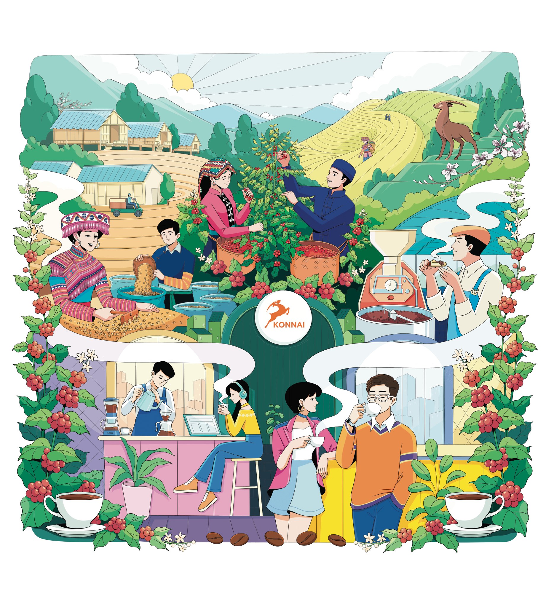 Konnai Coffee đã chắt lọc, khai thác tiềm năng của vùng đất Sơn La, nơi được mệnh danh là thủ phủ cà phê chè của Việt Nam. Những hạt cà phê Arabica được nuôi dưỡng tại đây, dưới bàn tay chăm sóc của những người nông dân đầy tâm huyết, mang trong mình hương vị độc đáo, đậm đà và tinh tế, chinh phục cả những tín đồ cà phê khó tính nhất. Konnai sở hữu chuỗi cung ứng “từ nông trường đến tách cà phê, có vùng trồng cà phê Arabica Sơn La hơn 100ha và nhà máy sản xuất cà phê đạt tiêu chuẩn châu Âu tại Hưng Yên.