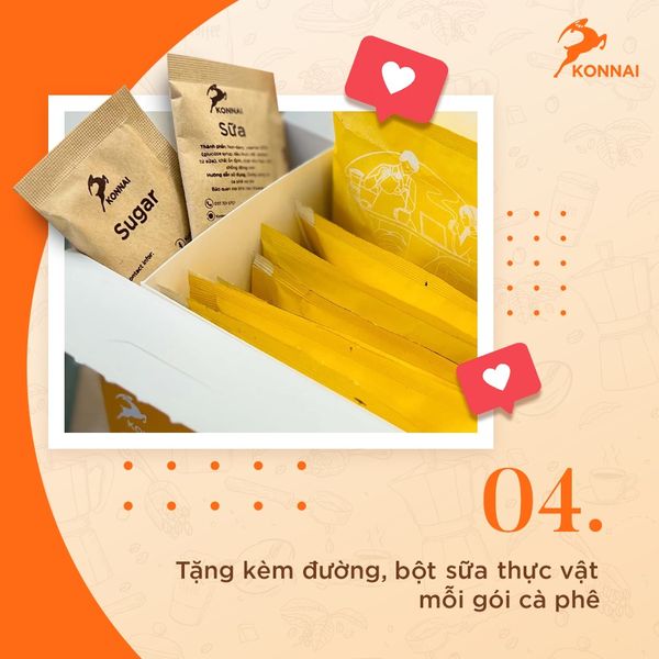 04 | Tặng kèm đường, bột sữa thực vật mỗi gói cà phê, CỰC TIỆN LỢI !