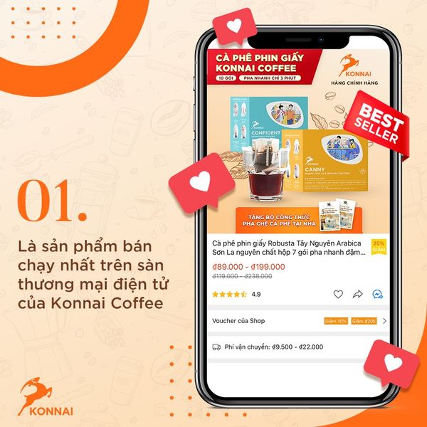 01 | Cà phê phin giấy là sản phẩm bán chạy nhất trên các sàn thương mại điện tử của Konnai Coffee với tổng lượt bán đạt mốc 2000 đơn hàng.
