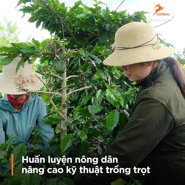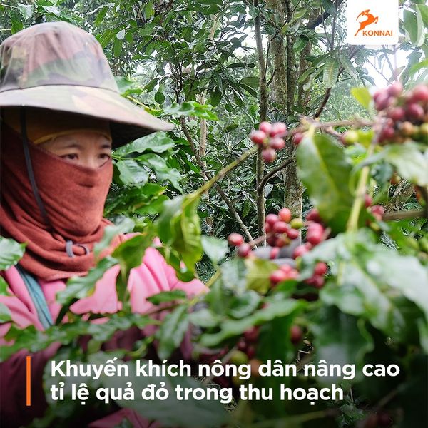 Để hoàn thiện mục tiêu này, Konnai Coffee đã liên tục tổ chức các khóa tập huấn nâng cao kỹ năng canh tác của người nông dân đồng thời khuyến khích bà con tăng tỉ lệ quả đỏ trong thu hoạch bằng các phương pháp ổn định giá nhập cà phê trên thị trường.